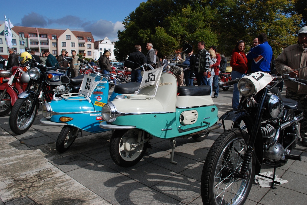 Svatý Petr se nakonec slitoval a již v době dopolední prezence poslal účastníkům hřejivé sluneční paprsky, které jim vydržely až do odpoledního finále na Žižkově náměstí v Táboře. Tam si mohli diváci během dvouhodinovém programu prohlédnout zúčastněné stroje, sledovat vyhlášení výsledků v celkem šesti kategoriích a zúčastnit se jedinečné jízdy tří historických závodních motocyklů značek Jawa, ESO a NSU, které v 50. letech proháněli závodníci po evropských okruzích včetně brněnského Masarykova v rámci GP 1954 nebo na již téměř zapomenutém Táborském okruhu, který patřil k nejvýznamnějším tratím v tehdejším Československu.
